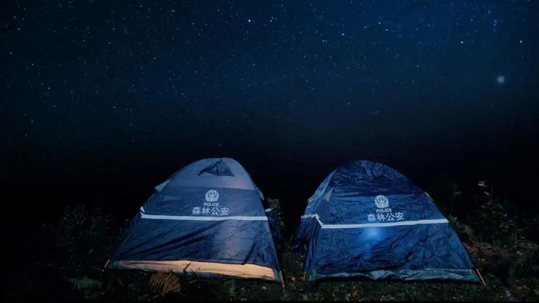 夜晚,民警们在候鸟迁徙点的山脊上扎起了帐篷。“40度帐篷宾馆”是民警们对这个点位的戏称。陡坡本就不适合扎营,但这个点位却是候鸟过路的必经通道,也成为猎捕者最可能藏匿的地点。所以,40年来,民警们基本都要在这个地方驻扎,随时观察周边的情况。新任所长张跃平回忆道:“万亩崇山守鸟窝,迎风冒雨睡地窝,说的就是这个地方。40年前第一任所长带领6名民警,在这里建立起了第一个候鸟守护点。当时条件艰苦,大家就着地上窝出的洞就开始搭棚子,一守就守了近40年。”话音刚落,鸟鸣声入耳,成片的候鸟贴着民警的头顶飞过。
