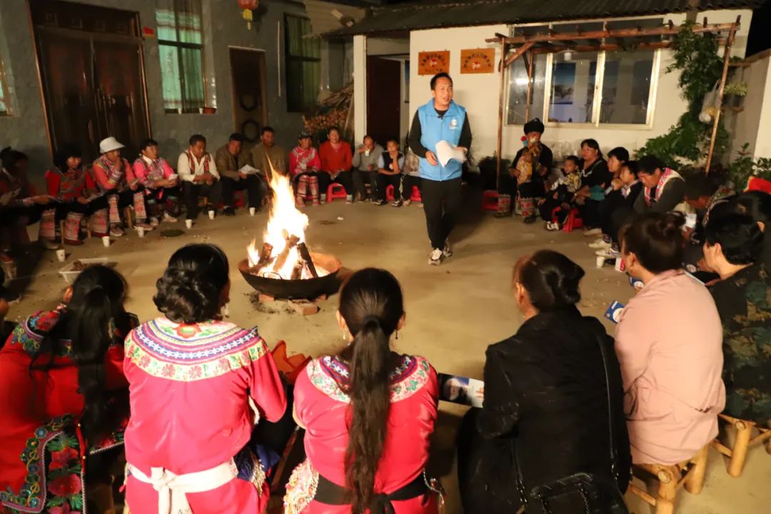 村民们围坐在火塘边,熊熊燃烧的火焰将他们的脸映照得红彤彤的,每个人的脸上都洋溢着笑容,村民们身穿民族服饰,一场“谈心式”上门普法活动,就这样温馨而有序地进行。“你们有什么好的意见建议或者遇到什么法律问题,今晚就敞开心怀,好好地拿出来讲讲。”随后村民们就村里的大小事纷纷发言,你一言、我一语,“说法”气氛不断高涨。“偷引带”违法后果你们知道吗?举报奖励政策有哪些……董贵榕全面细致地向村民们讲解《中华人民共和国反有组织犯罪法》防范电信网络诈骗、防范养老诈骗等相关法律法规知识,通过以案释法,教育引导村民要对法律心存戒律,坚守底线,努力改变过去部分村民的落后观念,教育引导村民爱国守边、自觉遵纪守法,积极参与到打击各类违法犯罪活动中来。随着交流的不断深入,产生共鸣的村民彻底打开了话匣子,通过问情于民、问计于民、问需于民的举措,着力解决群众的操心事、烦心事、揪心事,将法治理念落到实处,汇聚起共建共治共享法治乡村建设的磅礴力量。