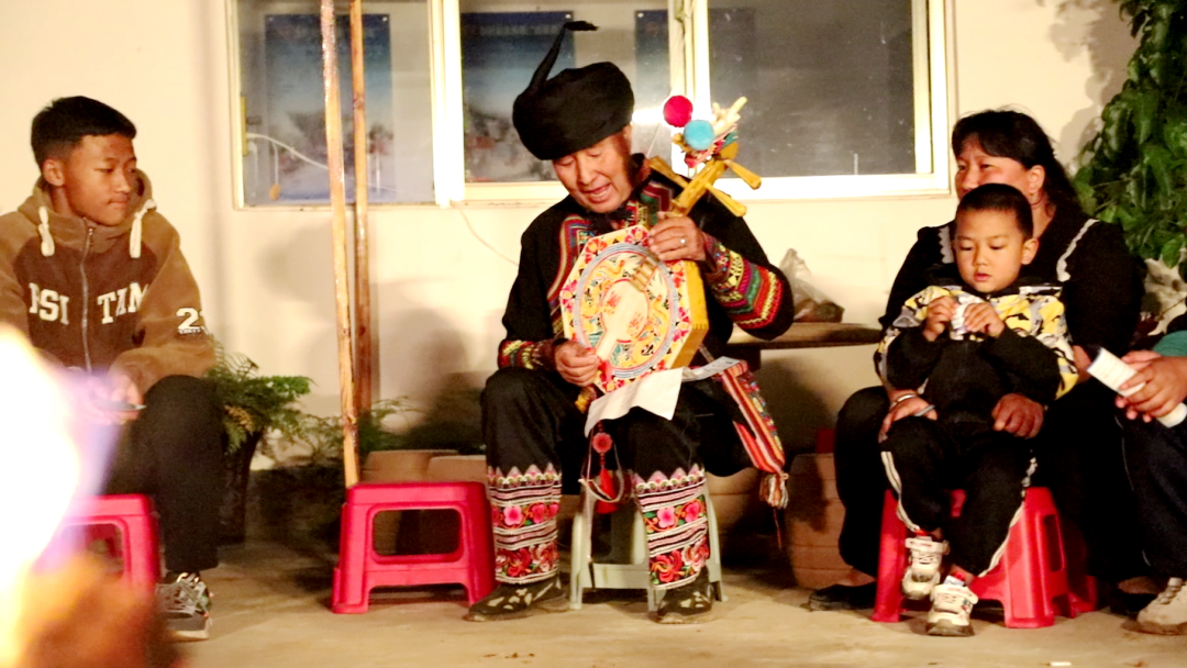 “遇事千万莫冲动,寻找法律明白人。法治社会法保障,利国利民齐欢唱。”普法文艺队长蔡绍荣弹起三弦,唱出彝家调,大家纷纷起身围着火塘跳舞,将活动推向了高潮。