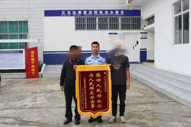 8月22日,王六星和家人再次返回片马,将“感谢人民好公仆 为人民群众办实事”锦旗送到片马边境派出所民警彭杰手中,家人紧握民警的双手连声道谢,喜悦之情溢于言表。