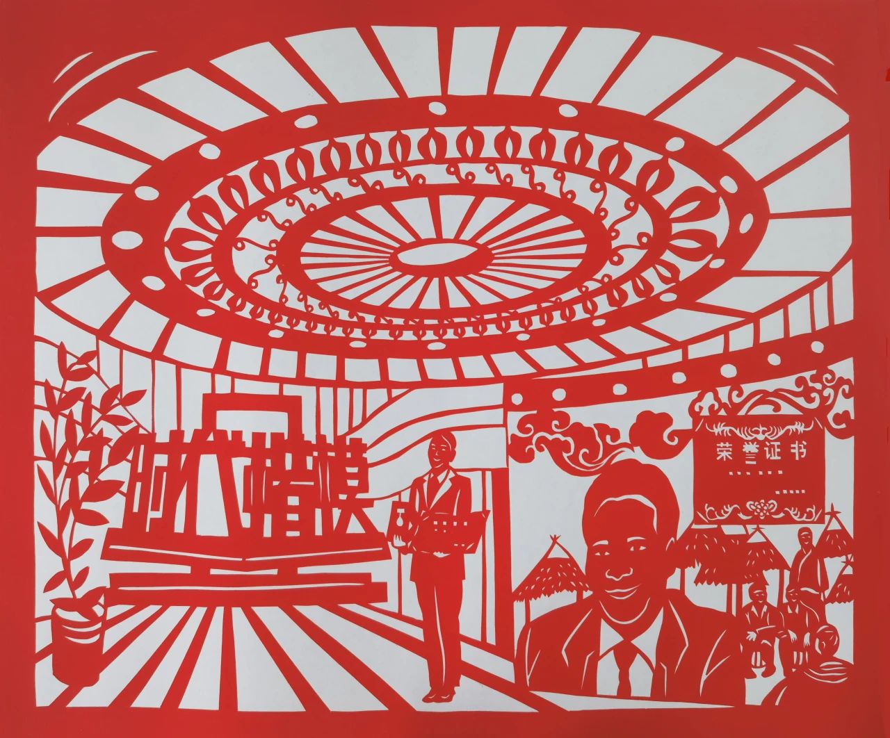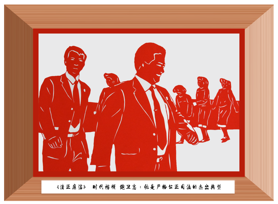 德宏中院以国家级非物质文化遗产傣族剪纸作品为载体,将鲍卫忠同志生前的工作场景镌刻进剪纸作品,充分展示了“时代楷模”的崇高形象和卓越风采。
