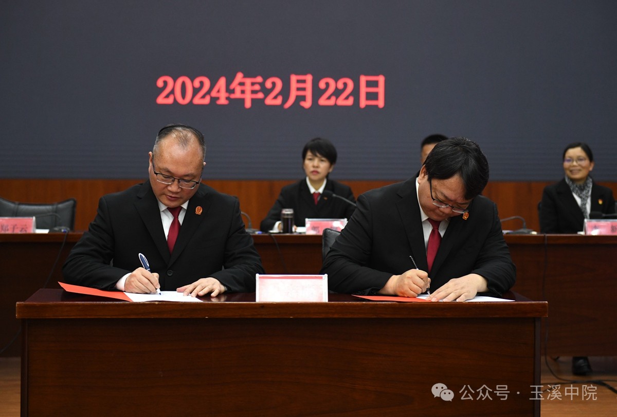 会上,王进与玉溪中院领导班子成员、基层法院院长签订2024年党风廉政建设责任书;玉溪中院党组成员、执行局局长郑子云宣读表扬通报;玉溪中院党组成员、副院长陶金对创建“清廉机关”工作作动员安排;玉溪市纪委监委派驻市法院纪检监察组组长、玉溪中院党组成员李新对全市法院抓好党风廉政建设和反腐败工作提出意见。