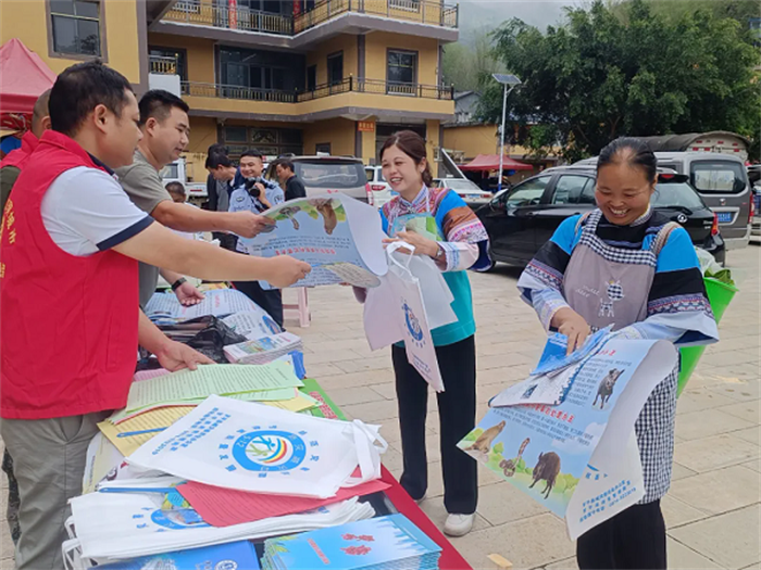 将民族团结进步创建工作与常态化扫黑除恶斗争、打击整治养老诈骗、禁毒、打击网络诈骗等工作相结合,充分发挥网格员、“吹哨人”“法治副村长”、一村一辅警等综治力量,深入乡镇(街道)、村(居)委会、村小组和农户家中宣讲民族团结进步创建政策知识,广泛开展防养老诈骗、禁毒、反有组织犯罪法等普法宣传活动,进一步增强少数民族群众法治观念,引导各民族群众自觉守法、遇事找法、解决问题靠法,唱响民族团结协奏曲。通过政法机关微信公众号、抖音号等新媒体矩阵,刊登民族团结进步示范建设宣传稿件、宣传标语,加强民族团结氛围宣传。今年以来,全县共开展法治宣讲62场次,法治电影进学校、进农村、进社区、进广场活动1000余场次,向群众发放宣传资料10万余份。