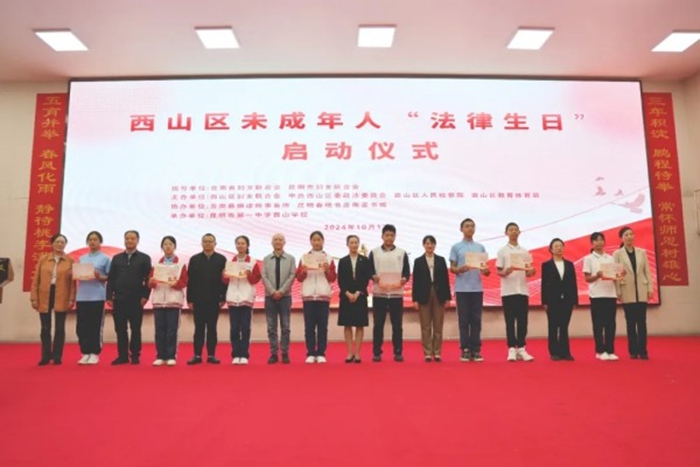 近日,昆明市西山区未成年人“法律生日”启动仪式在昆一中西山学校举行,旨在进一步加强和改进未成年人权益保护,强化未成年人犯罪预防和治理。
