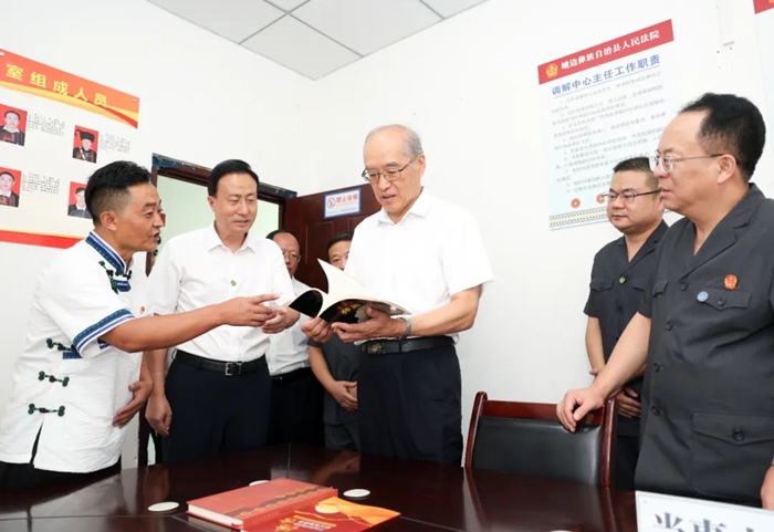 调研组一行还看望慰问了一线法院干警,通过面对面交谈、视频连线、实地走访等形式,与诉服窗口工作人员、人民法庭干警、特邀调解员、当事人等沟通交流。