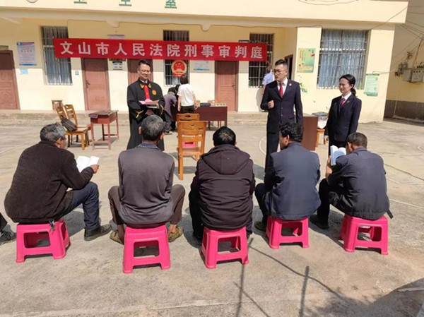 近日,文山市人民检察院在履行公益诉讼检察监督职责中发现,周某某失火烧毁森林的行为对社会公共利益造成损害,办案人员经过研判后将该案立为刑事附带民事公益诉讼案件开展办理。经过深入调查后发现,近年来文山市此类案件频发,其主要原因是部分群众缺乏相应的防火意识和法治意识,在播种前有烧荒的习惯,烧荒过程中因无法控制火势导致火灾。为充分增强案件办理质效,达到以案释法的普法效果,文山市人民检察院与文山市人民法院将庭审现场搬到群众身边。