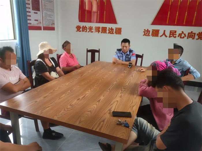 图为勐桥所民警与司法所、乡政府工作人员开展“利剑护蕾”工作