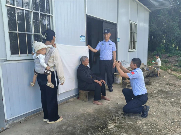 图为民警与辅警下乡为群众采集照片