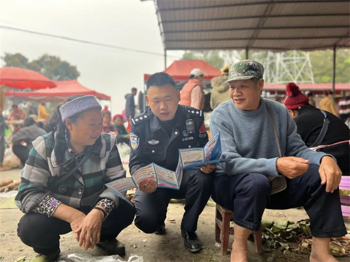 图为勐桥所民警在赶集日开展普法宣传