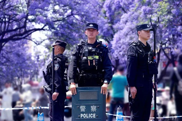 据了解,巡特警大队派出30名特警队员分为骑警巡组、徒步巡组、特战巡组三组编队,每天8时起便不间断在蓝花楹周边开展巡逻和交通疏导工作。“我们要确保五华分局街面特警队伍在常态时‘武装震慑’,在处置时‘发能快处’,在攻坚时‘处必制胜’,充分发挥特警队伍在巡逻防控和重大节日期间‘分级设防、驻点快反、联动支援、片区拉动、动中备勤’的防控职能,确保‘大事全网联动、小事一格解决、急事快速反应’。”周锐磊表示。