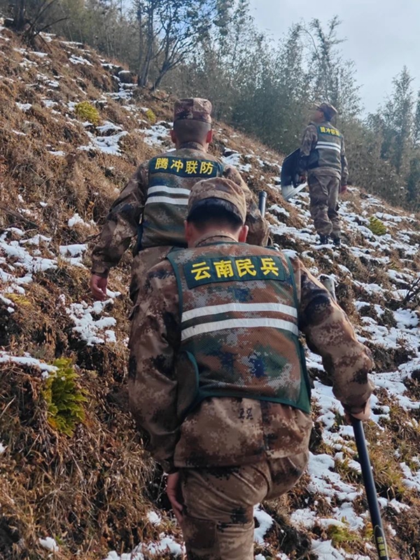 孟继刚,1985年出生于明光镇自治村,傈僳族人。自幼受到明光抗英名将左孝臣的事迹熏陶,民族精神、爱国情怀早已厚植孟继刚心底。2020年,他主动加入了民兵行列,肩负起守卫家乡、守卫祖国边陲的责任。同年11月,他主动请战、镇守边疆,第一次踏上边境线,成为一名守边人,次日他就迎来了山中入冬的第一场雪。