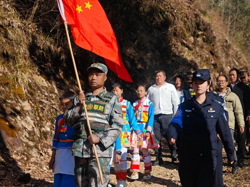 清晨,一声略带沙哑的喊声划破寂静:“起床咯,水都给你们烧好了!”这是腾冲市明光镇北6号联防所副所长孟继刚,他的声音穿过高山薄雾,唤醒了沉睡中的守边人。他拉了拉身上的大衣,肩膀微微下沉,目光坚定,仿佛要穿透眼前的浓雾。经过简单洗漱后,9位守边人整装踏上了漫长的巡边路。孟继刚总是扛着国旗,走在队伍的最前面,大家一同走过陡峭的山脊,穿越茂密的丛林,日行万步,只为守护身后的万家灯火。