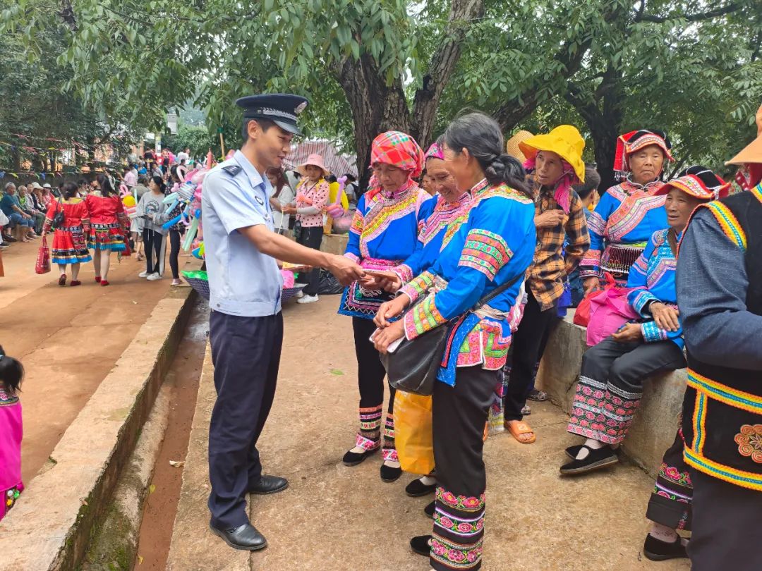 线下,通过悬挂横幅、张贴标语、发放材料、面对面讲解等方式,向群众宣传防诈骗、防溺水、禁毒拒赌、交通安全等知识。