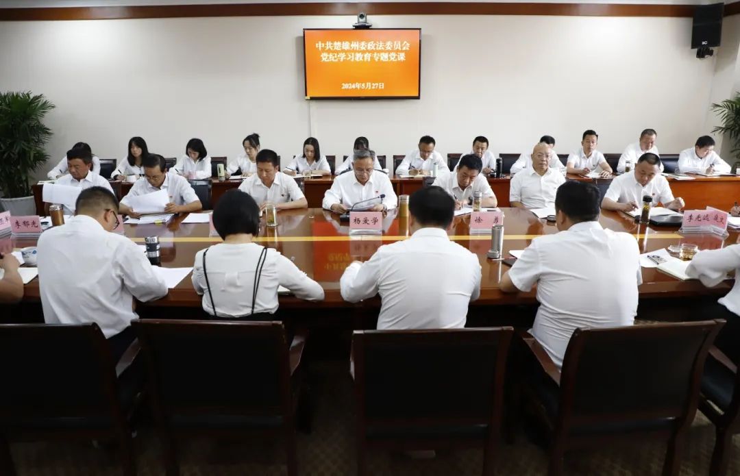 为深入开展党纪学习教育,推动全面从严治党向纵深发展,教育引导党员干部明“纪”于心,守“纪”于行,5月27日,楚雄州委政法委常务副书记、一级调研员杨爱学为委机关全体党员干部职工讲授党纪学习教育专题党课。
