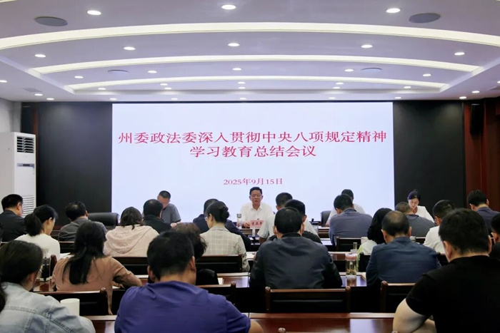会议强调,学习教育结束不是作风建设的终点,而是新的起点。要进一步深化抓作风建设的思想认识,在严和实、深和细上下功夫,持续巩固拓展开展深入贯彻中央八项规定精神学习教育成果,以作风建设为引领保障全州政法工作高质量发展。要进一步筑牢作风建设的思想堤坝,持续加强纪律培训与警示教育,引导党员干部树立正确的世界观、人生观、价值观。要进一步强化学习教育成果转化,常态化抓实问题整改,完善作风建设的制度机制,落实全面从严治党各项工作任务,突出作风建设和效能建设,推动政法工作有部署、有推进、有落实、有成效。