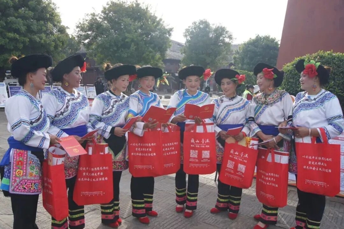 自普法强基补短板专项行动开展以来,巍山县结合当地民族文化优势,采用群众喜闻乐见的方式,创作《彝家山歌说普法》《普法强基很重要》等文艺作品;结合各乡镇特色,推出“清单式普法”“村民月例会普法”“点单式普法”等形式多样的普法模式,有效提升了普法强基补短板专项行动成效。