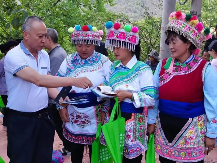 巍山县充分利用“松花会”“巍宝山会”“巍山小吃节”“茶山会”“梨花节”等时机,结合律师“万人进千村帮万户”法律服务、书记院坝会等工作,用“零距离”的宣传方式,深入到农户家中“面对面、背靠背”进行宣传,提高农村群众的法律意识和法治观念。