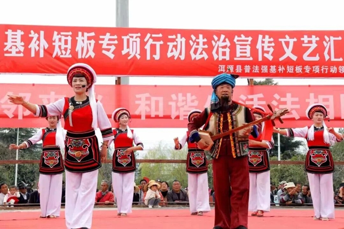 持续加强法治文化创作。立足民俗、民情、民族文化资源优势,组织编写、创作《弥川处处普法歌》《当“非遗”遇上“反诈”》等一批以法治为题材的说唱、小品、歌舞、情景剧,用“白族大本曲普法”“花灯普法”“彝族打歌普法”推动法治文化与民俗文化、乡土文化融合发展,用熟悉的乡音把法律知识送到群众心里。