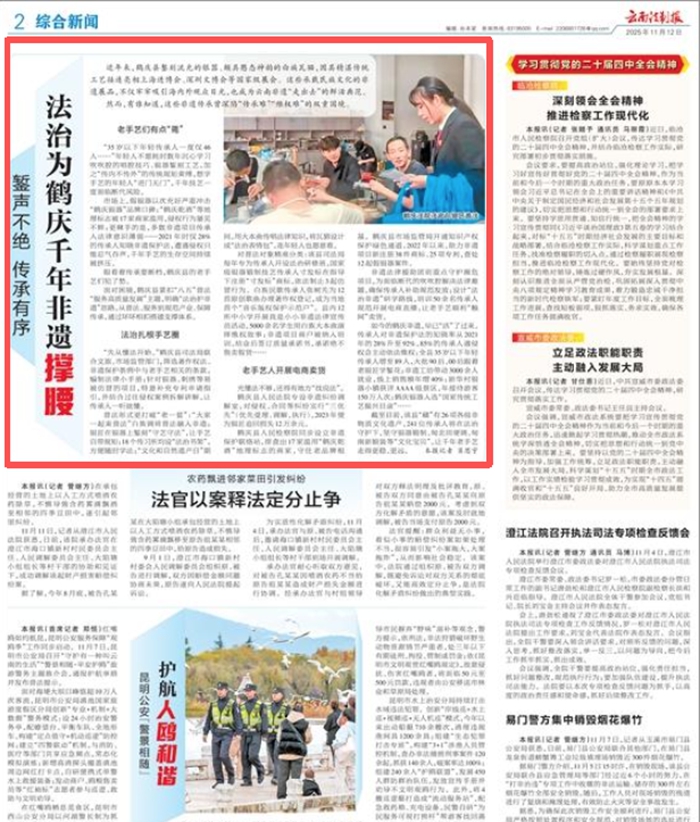 非遗法律援助团则重点守护濒危项目,为面临断代的吹吹腔解决法律难题,确保非遗代表性传承人补助规范发放;设计“法治非遗”研学路线,培训50余名传承人规范开展电商直播,让老手艺顺利“触网”卖货。