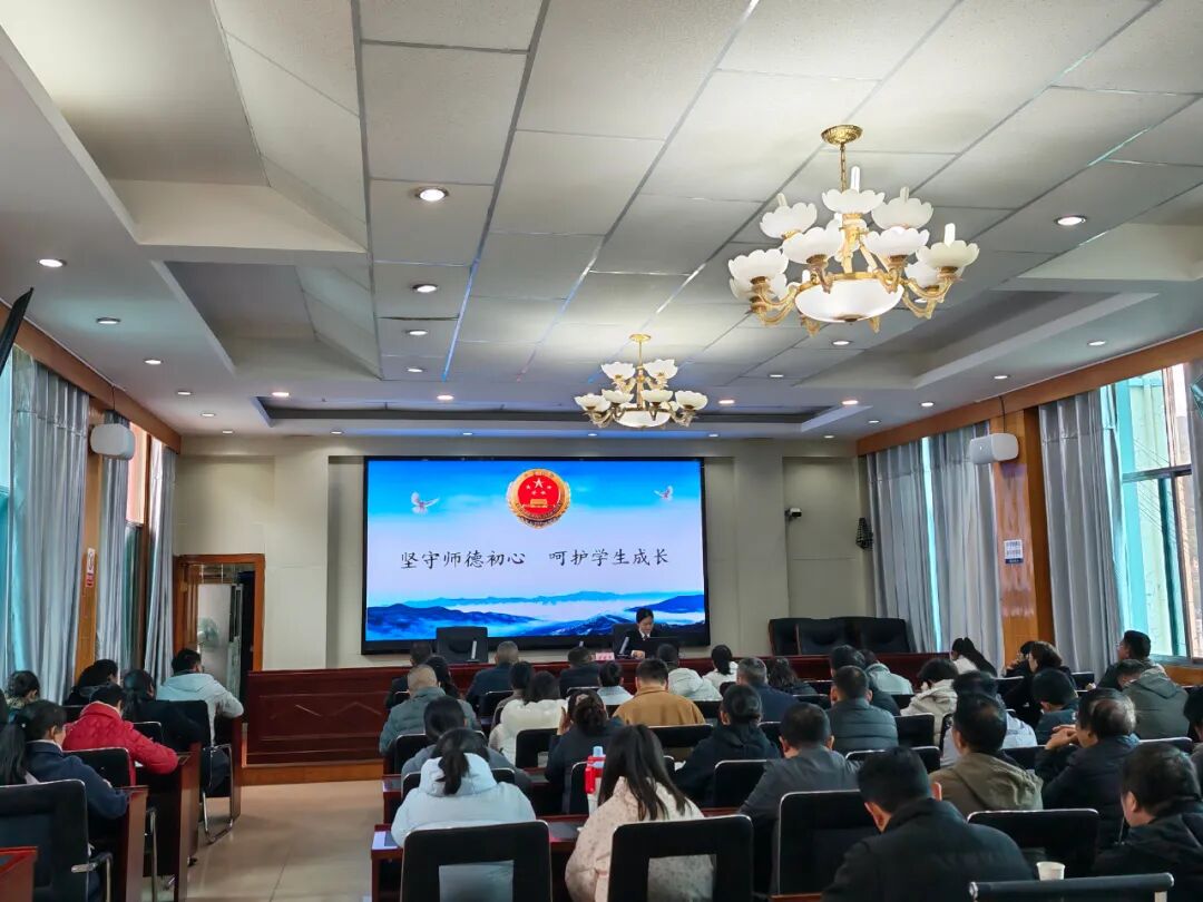 在县教育体育局,讲师团以“坚守师德初心,呵护学生成长”为主题。通过分析师德师风反面典型案例,深入剖析失德失范行为的严重性,围绕教师行为法律边界、涉未成年人犯罪现状及反思、强制报告制度等内容进行讲解,为教师厘清“师德底线”与“法治红线”,勉励全县教师要牢固树立“立德树人、教书育人”的思想,努力做到“以德树师表、以德促师能、以德铸师魂”,真正做一名师德高尚、业务精湛的高素质人民教师。全县中小学、幼儿园150余名教师代表参加活动。