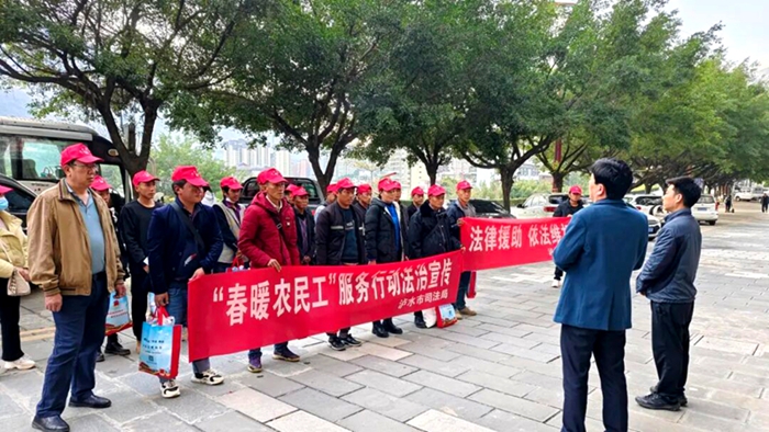 面向国家工作人员,泸水市强化法治能力培训,2021年以来,市委党校开设法治课程36期,培训干部4572人次;组织领导班子述法考核4次、338人次参与,开展庭审观摩23场次,推动依法履职成为共识。针对农村群众与搬迁安置点居民,依托“中国农民丰收节”“目瑙纵歌节”等节庆活动,开展“乡村振兴·法治同行”“送法下乡”活动1300余场次,覆盖群众超20万人次;聘任86名政法干部担任“法治副村长”,通过“火塘式”“院坝式”宣讲,把法律知识送到田间地头。