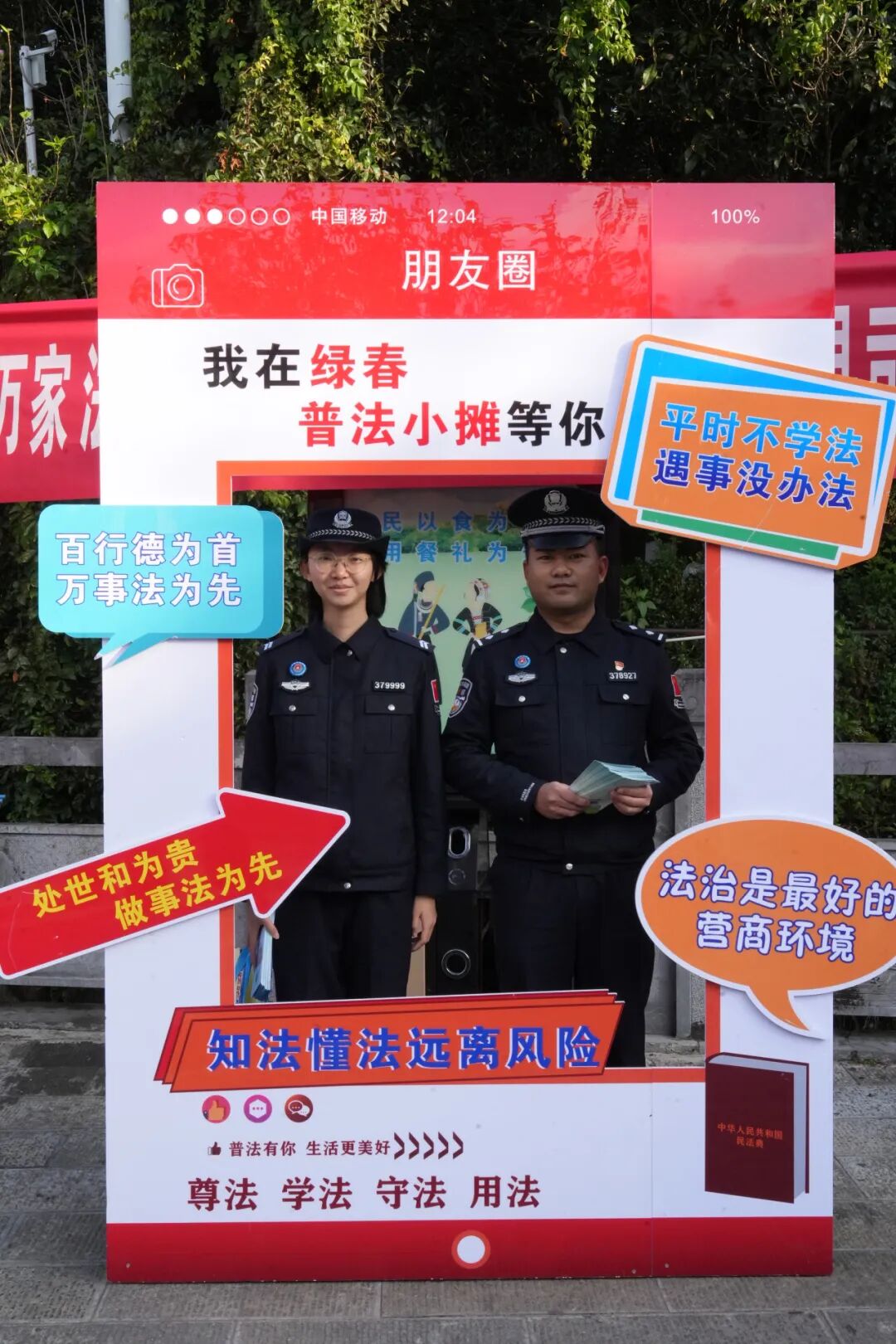 “劳动合同这样签规范吗?”在绿春边境管理大队联合公、检、法精心布置的系列普法摊位前,民警结合实例一一为群众解答疑问。紧接着,趣味互动环节将气氛推向高潮:“我在绿春普法小摊等你”法治墙前,大家排队合影,定格学法瞬间;“反诈知识墙”旁,群众认真阅读案例、参与有奖竞答。“原来这种短信真是诈骗啊!”一位大爷恍然大悟。