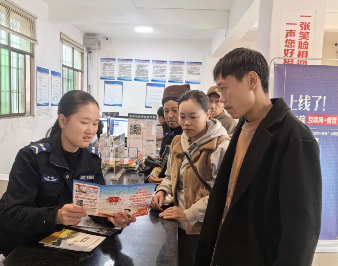 “这是您的材料请拿好,旁边还有宪法宣传册可以看看。”在平河边境派出所的户籍窗口,民辅警每次递出材料时,都会加一句温馨提醒。等待间隙,不少群众翻阅着台面上的宪法读本。