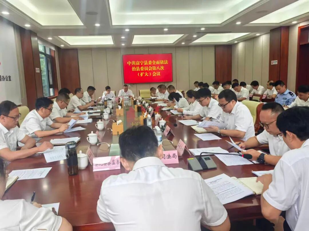 将习近平法治思想纳入“第一议题”、县委理论学习中心组学习内容和党校重点课程,依托媒体平台与普法阵地推动思想入脑入心。压实法治建设第一责任人职责,纳入县委常委会、县政府常务会议及各级党委(组)年度专题研究议题,定期召开县委全面依法治县委员会等会议破解重点难点。完善党领导全面依法治县制度机制,调整协调小组及办公室成员并明确职责清单,2023年,设立县委全面依法治县委员会办公室秘书股强化保障。健全述法工作机制,汇编党政主要负责人述法报告并召开述法会议8次,24人现场述法压实责任链条。出台《富宁县提升法治建设成效十条措施》,通过年度考核细则、实地调研、工作督察实施动态清单管理,组建督察组开展全覆盖法治督察并督促限时整改问题。
