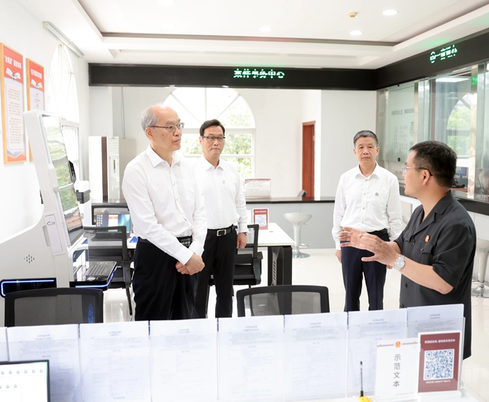 最高人民法院党组书记、院长张军率调研组在重庆市石柱土家族自治县综治中心调研。