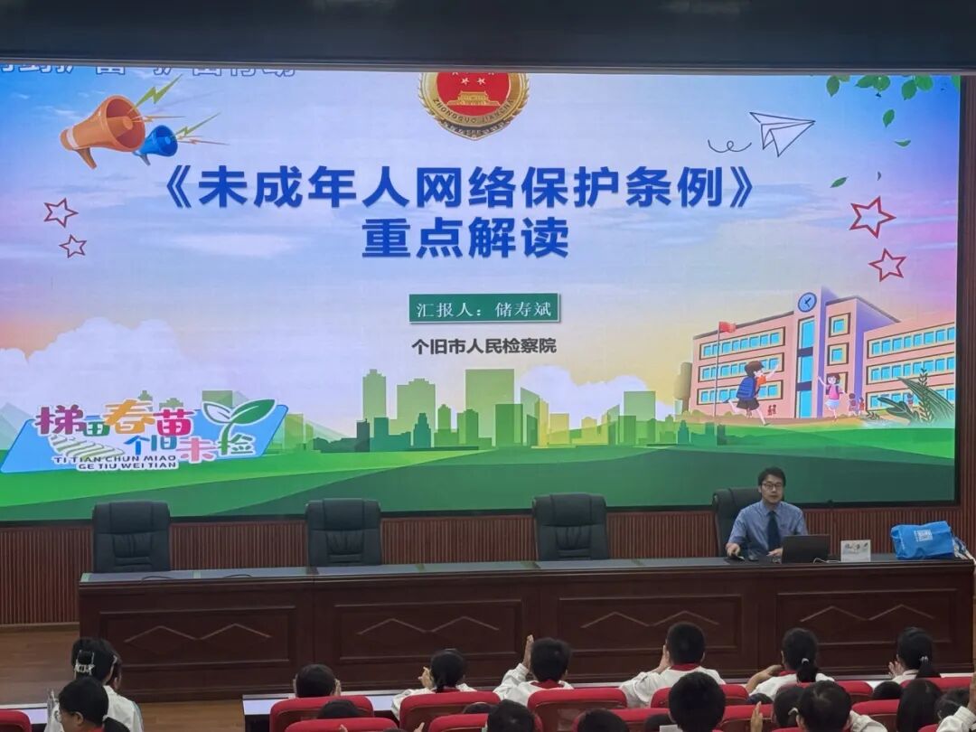 为切实增强青少年法治观念,提升青少年网络安全防范意识,为青少年营造健康清朗的成长环境,近日,红河州个旧市人民检察院未检检察官走进校园,连续开展了多场以“网络护航 法润青春”为主题的法治讲座。