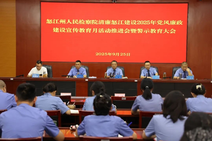 为深入贯彻落实中央八项规定精神,巩固拓展深入贯彻中央八项规定精神学习教育成果,持续纵深推进“清廉怒江”建设,近日,怒江州人民检察院召开清廉怒江建设2025年党风廉政建设宣传教育月活动推进会暨警示教育大会。