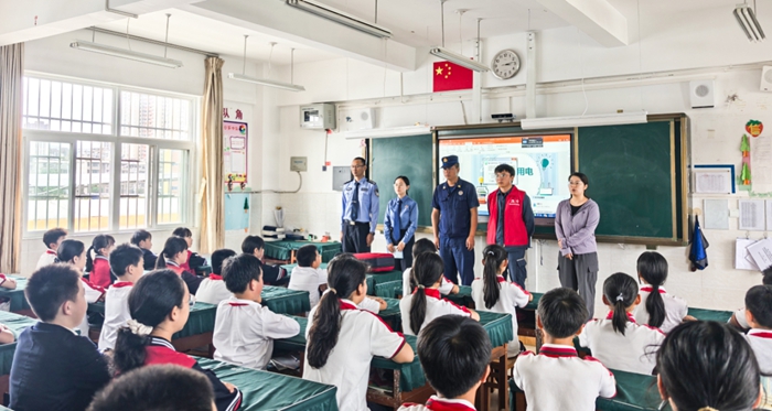 多部门协同联动构建“普法共同体”成为本次活动鲜明特色:公安民警聚焦电信网络诈骗、校园安全等高频风险点,利用多媒体演示开展情景化教学;消防救援人员现场演示灭火器操作并讲解相关消防知识,帮助学生将防灾自救技能转化为实践能力;供电局工作人员通过图文演示、案例警示讲解安全用电规范,帮助学生树立“用电安全无小事”的防范意识。在互动环节,“星光未检团队”设置法律知识问答,学生们纷纷踊跃抢答,在互动中巩固学法成果,现场氛围热烈活跃。