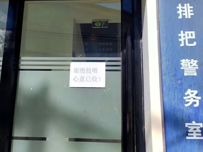 一次次婉拒,一次次被村民的“执着”打破。为了不辜负这份深情,也守住纪律底线,警务室门口贴出了一张特别的告示牌:“谢绝投喂,心意已收”。