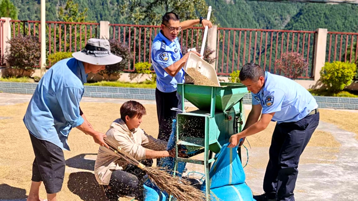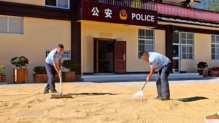 “我们敞开大门让群众到我们派出所和警务室院内来晒粮,这样不仅安全、省心,也避免了在马路上晒粮出现安全风险,民警辅警还可以给群众帮忙。”丙中洛边境派出所相关负责人介绍说。