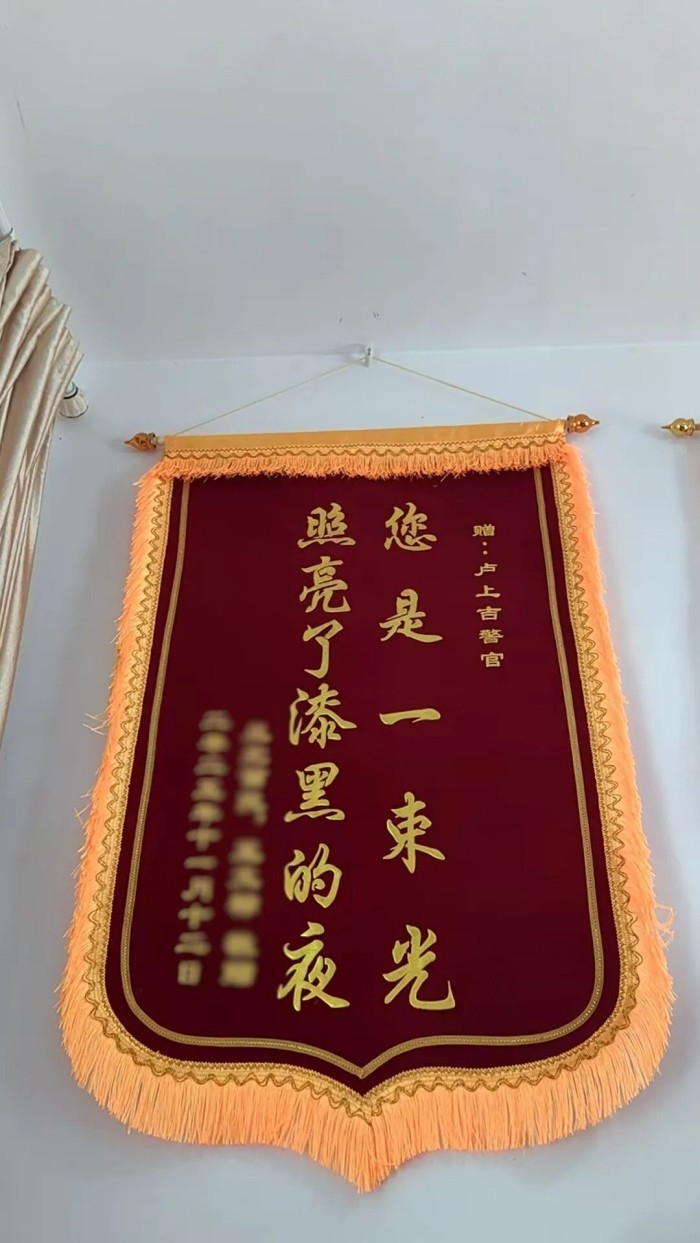 感动不止于点赞转发,王先生决定用行动传递这份善意。“我虽然不在家乡,但看到民警们这么用心守护家乡的老人,必须表达我的敬意。”因王先生长期在浙江工作,无法当面将锦旗送到民警手中,所以他通过网络查到了木杠边境派出所的地址和联系方式,特意从网上定制了一面锦旗,寄往文山边境。