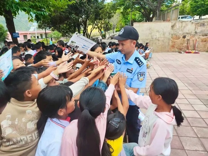 “双语”普法是背包警务的“硬功夫”。由于辖区民族群众聚居,部分老人不懂汉语,法治观念相对薄弱,民辅警相互配合练就了“双语切换”的本领。在彝族村寨,教导员小沙用彝语讲解过量饮酒的危害,翻着宣传册里的插画举例子;到傈僳族群众聚居的村落,辅警小恩就接上话头,用傈僳语普及道路交通安全法。遇到村民吵架拌嘴,背包里的宣传资料成了“活教材”,民辅警边劝边讲,把法理人情揉进家长里短,原本剑拔弩张的矛盾渐渐消融在温暖的火塘边。