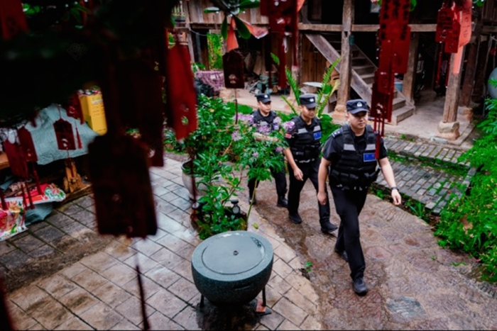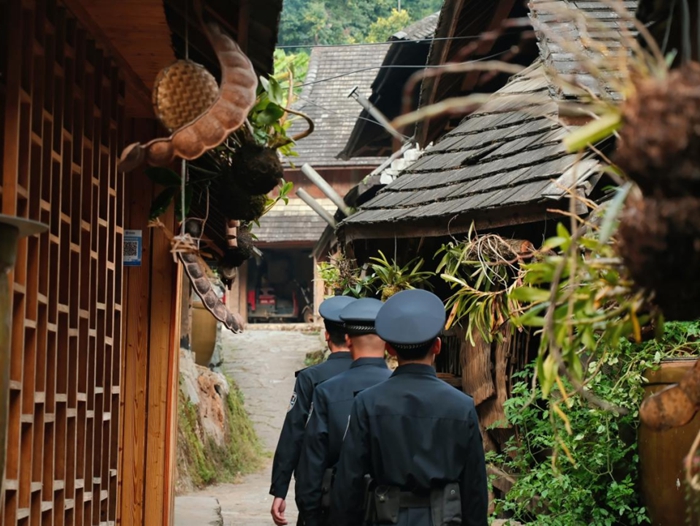 景迈山警务室配备专职民警和辅警,依托“10分钟响应、30分钟处置”机制高效处理涉旅警情、调解纠纷。此外,制定专项安保方案,联动“彩云佳园”实现游客信息“秒级登记”,指导安装监控120余台,实现重点区域全覆盖,让游客在安全与便捷中感受温暖。围绕古村落与古茶林保护,推出生态警务“组合拳”,采用“步行+车巡+视频”三巡联动,出入口设卡点,分片区联合巡护。建立“48小时客流预警机制”,联合村委会排查民宿消防安全隐患,规划“茶林赏景+便捷停车”路线并设指引点。