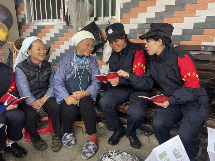 “师傅,您店里的消防通道不能堆放杂物,这不仅违反消防法规,还会影响紧急情况下的逃生安全。”清晨的阳光刚洒向文山州富宁县郎恒街道,身着制服、佩戴“郎恒女子义警”标识的农大姐便与派出所民警一同穿梭在沿街商铺,开展消防安全排查。自2023年郎恒边境派出所郎恒女子义警队组建以来,这样的场景每天都在辖区各处上演,这支由群众自发组成的志愿队伍,正以“主人翁”的姿态,成为基层普法宣传与平安建设的重要力量。