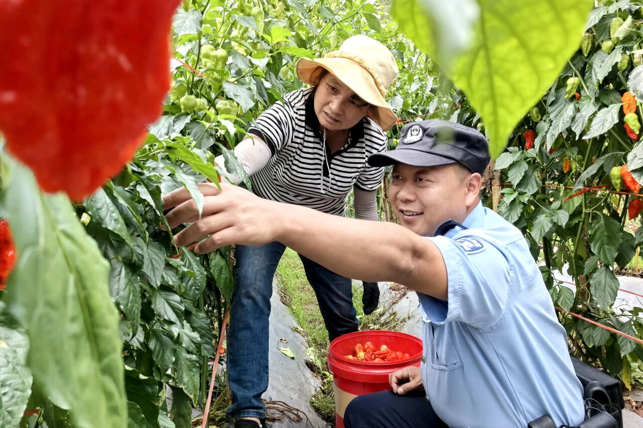 2025年6月是辣椒挂果关键期,“产业警长”在巡查中发现一处监控线路被恶意剪断。民警连夜摸排、追踪视频,次日迅速锁定嫌疑人,成功预防了一起可能造成22吨辣椒损失的重大案件。种植户罗师傅由衷感慨:“警察在身边,安全真的有保障!”