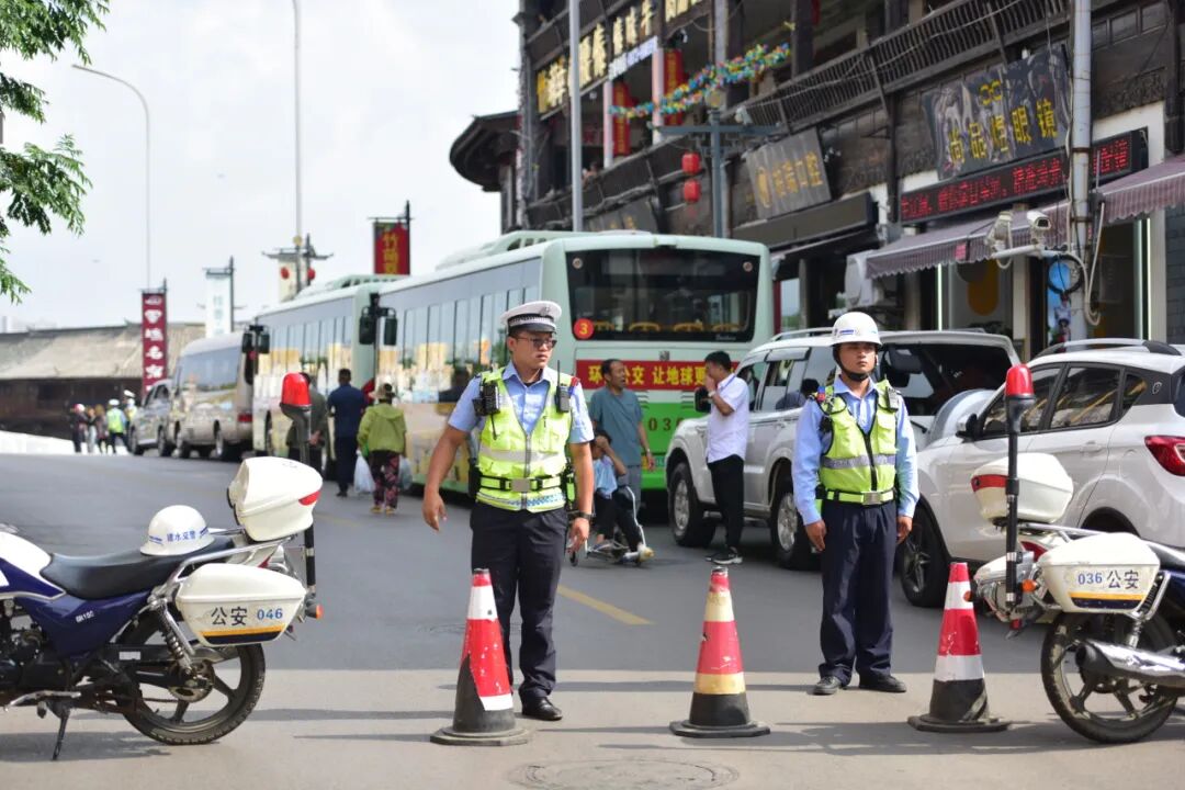 他们还通过调控信号灯、高空喊话、设置单行线等方式,有效疏通堵点。游客感慨:“没想到小城路这么顺!”