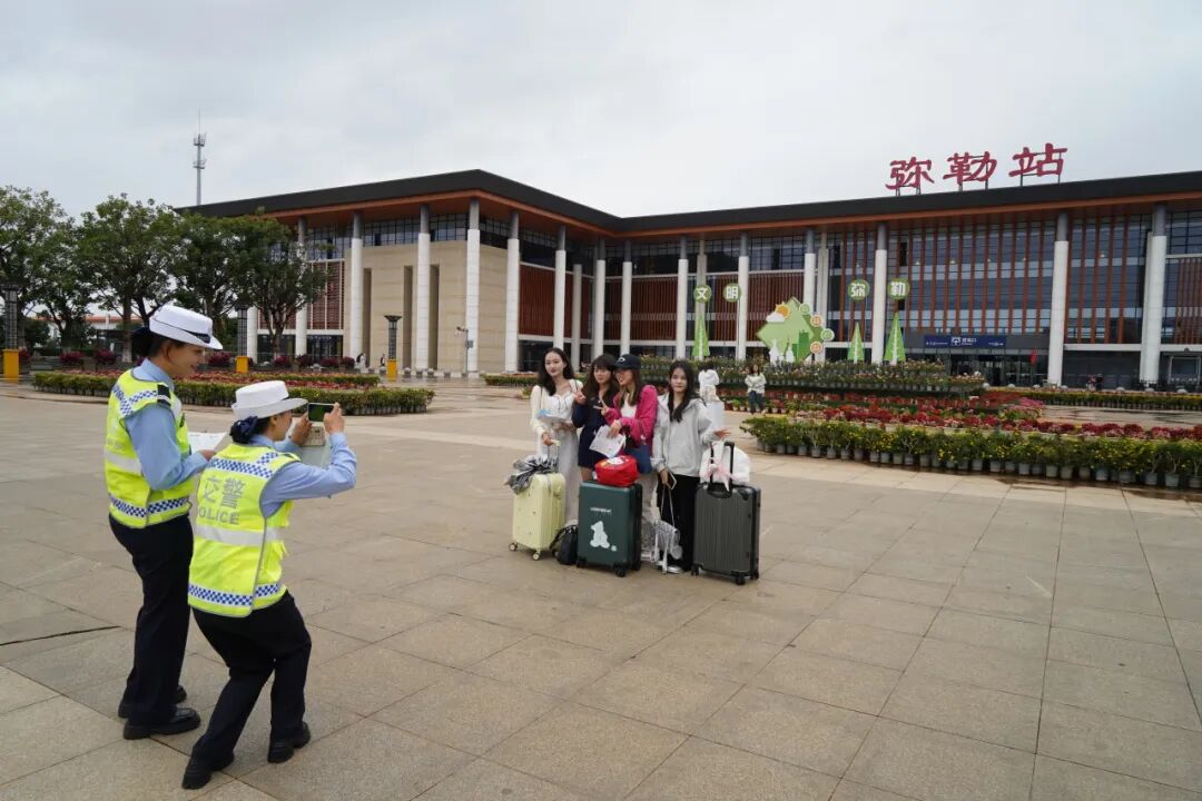 十年来,弥勒市逢山开路、遇水架桥,“公铁航”立体综合交通成网成型,与滇中、滇南半小时生活圈加快构建,入弥旅游人数与日俱增。为让游客感到宾至如归,弥勒市公安局在高铁站、汽车客运站设立党员先锋警务岗,主动解决游客和群众求助。快接快处涉旅报警,强化涉旅纠纷调处。深化轻微道路交通事故快处快赔服务,加强外省入弥人员交通安全手机信息提示。升级“弥勒微警务”小程序,提供线上警务服务。指导宾馆酒店扫码登记、人脸验证,实现高效便捷入住。今年以来,服务游客求助1580起,调解涉旅纠纷43起,高效处置涉旅警情2000起、涉旅轻微交通事故3046起,为游客挽回经济损失29.1万元,获赠锦旗47面、感谢信35份。