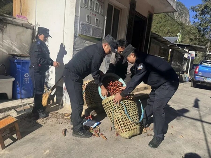 在每年草果采摘季,怒江公安组建联合检查组,深入林区排查用火安全、用工规范等问题,重点防范山林火灾、劳资纠纷等潜在风险;从村民、护林员中发掘“土专家”组建生态信息员队伍,凭借他们熟悉山情林情的优势,第一时间发现并消除生态安全隐患。