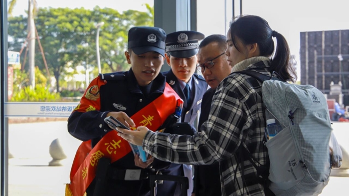 活动现场,各警种民警将专业服务送到旅客身边,治安民警在安检区域开设“一分钟安全课堂”,演示防盗防扒技巧,并发放《中老铁路安全出行指南》;经侦民警为跨境经商人员提供合同风险提示,讲解防范非法集资知识;法制民警设立法律咨询台,就边境管理、跨境纠纷等提供专业解答。老挝籍旅客坎萍·占塔在民警帮助下保存了中老两国报警电话:“中国警察就像可靠的朋友,让我在异国他乡感到安心。”