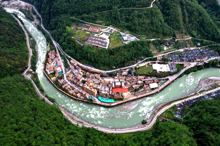 怒江州贡山县独龙江乡清澈如镜的江水一泻而下,桃花开满两岸,宛如一条流动的翡翠。