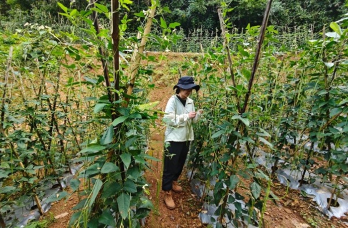 尹姐一边摘豆一边笑着说:“以前种庄稼靠天等收成,现在种豇豆,两天就能赚回头钱,心里踏实!”