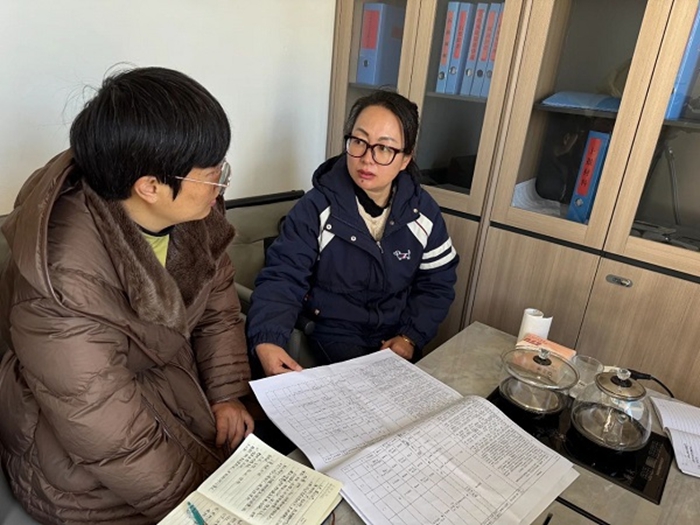 罗江涛(右一)在古城区七河镇司法所与工作人员交流