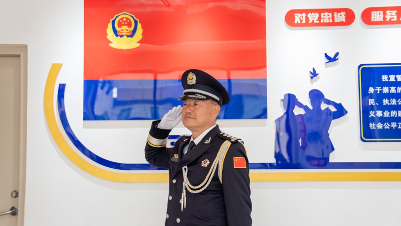 2025年8月18日,即将退休的何晓龙站好了最后一班岗。他像平常一样穿梭在熟悉的街头巷尾中,最后一次用脚步丈量着平安的距离。