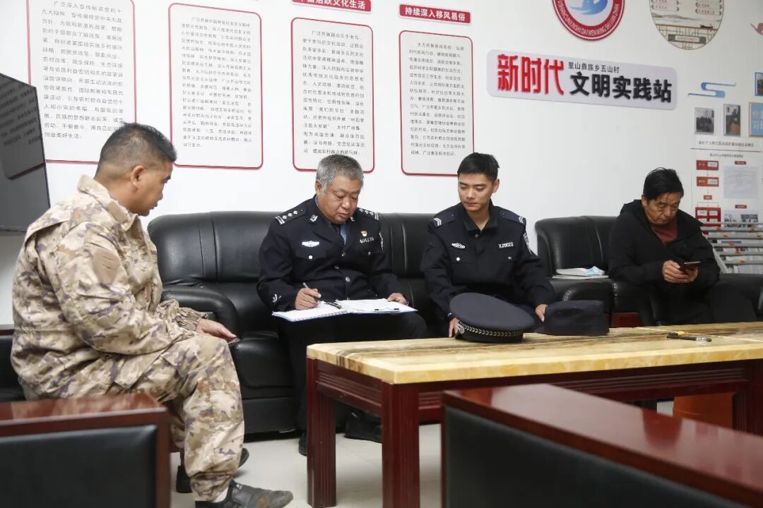 2023年,老陈调整到里山派出所工作,虽然时间不长,但他早就和里山乡群众打成一片,群众见到他都亲切地称呼他“老陈”“陈叔”。