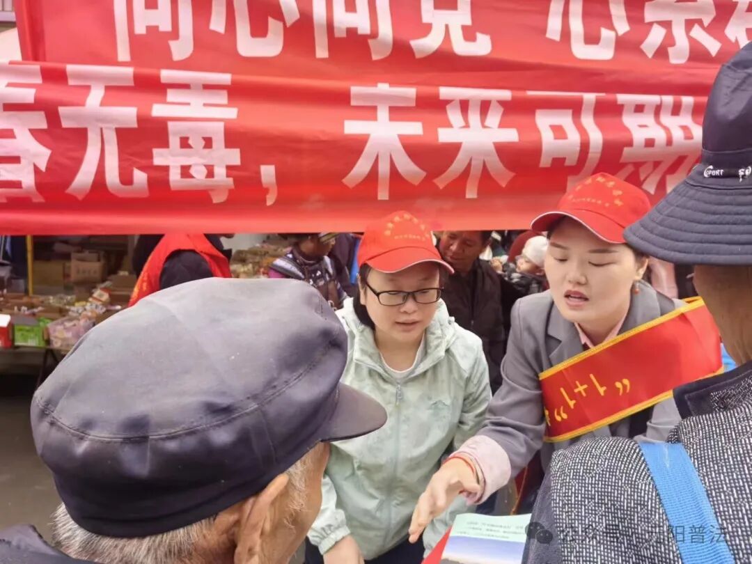趁着街子天群众赶集购物的热闹时机,工作人员在集市核心区域搭建普法宣传台,摆放宣传展板、悬挂宣传横幅,向过往群众发放涵盖婚姻家庭、劳动维权、反诈防骗等内容的普法手册和小礼品,用接地气的方言解答大家关心的法律问题,让群众在赶集之余轻松学习法律知识,让普法宣传更具吸引力和传播力。