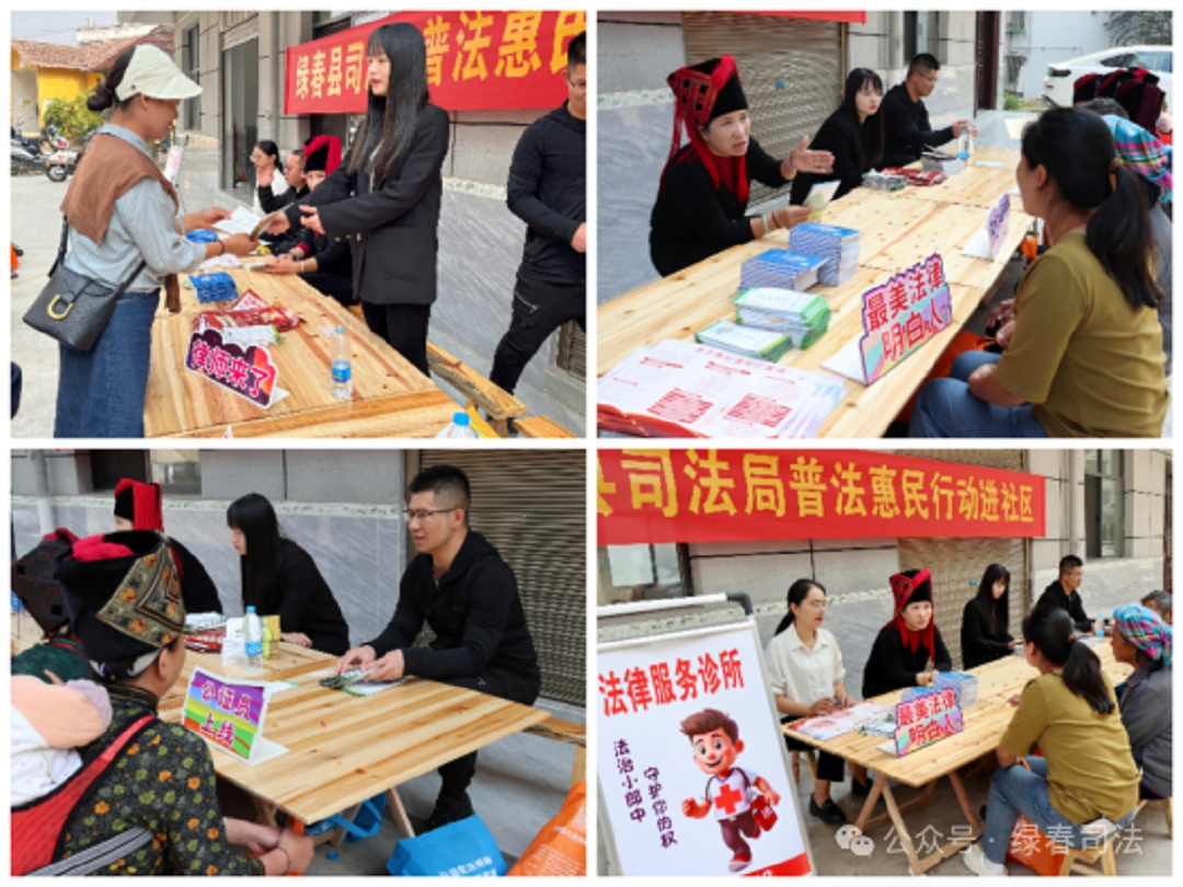 近年来,红河州绿春县司法局以群众需求为导向,靶向破解基层“找法难、用法难、维权难”的痛点,创新打造集普法宣传、法律援助、法律咨询、矛盾纠纷调解于一体的“社区法律服务诊所”,通过多元化服务、精准化对接、民族化创新三维发力,将法律服务送到群众“家门口”,构建起覆盖全县15个社区的基层法治服务网络,成为筑牢基层治理的“法治基石”。